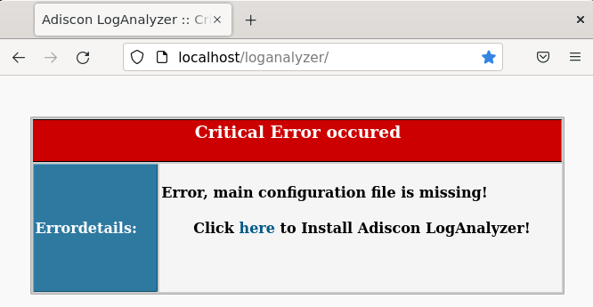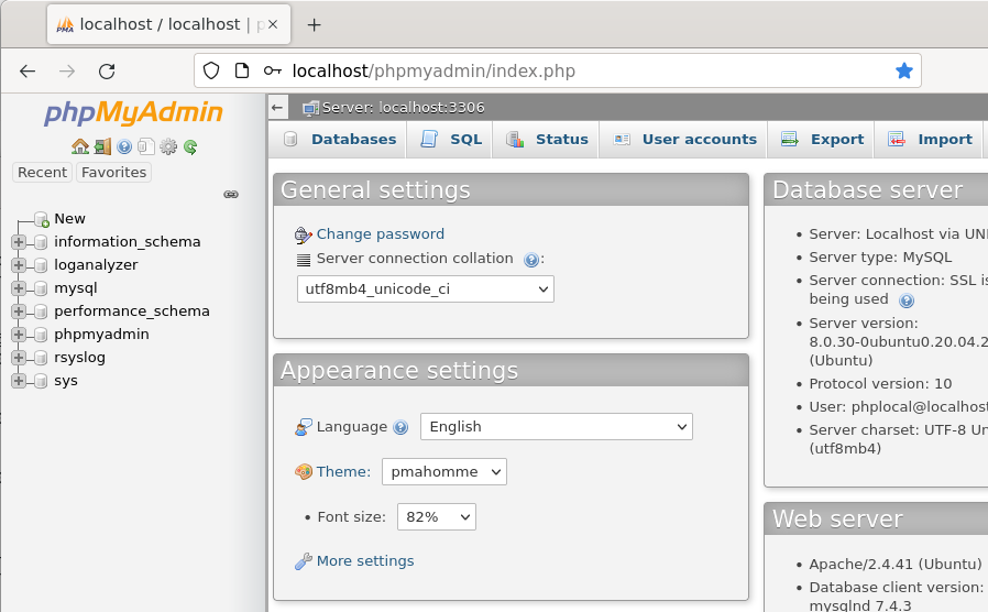 Единственное, 1 раз указал неправильное имя таблиц — systemevents (все буквы в нижнем регистре), в этом случае, логанализер загрузился, но ругнулся на работу с базой, но не помню как именно.