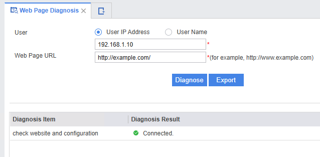Web Page Diagnosis – проверка доступности веб-страниц, HTTP/HTTPS-ответов, задержек и ошибок веб-доступа.