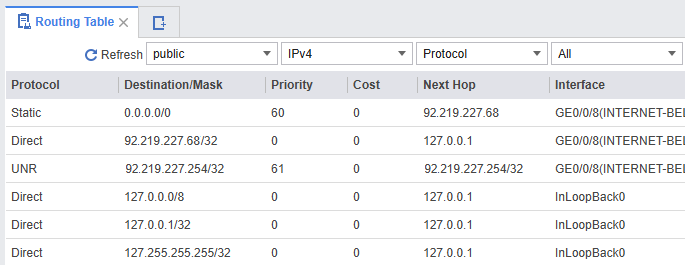Routing Table – просмотр активной таблицы маршрутизации: статические маршруты, динамические протоколы, next-hop, приоритеты.