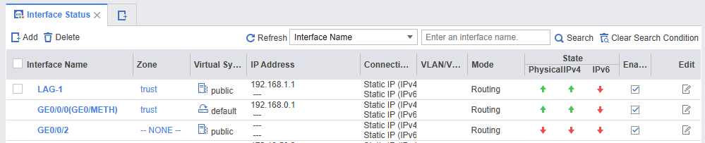 Обобщая можно сказать что Interface Status показывает состояние всех интерфейсов USG и их настройки. В диагностике используется для проверки доступности интерфейсов, корректности маршрутизации и правильности прохождения трафика.