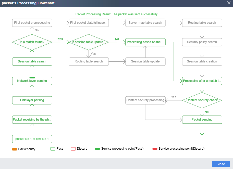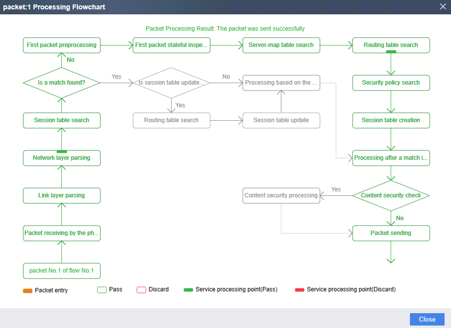 Packet Processing Flowchart – это детализированная блок-схема, показывающая, как USG обработал данный пакет на каждом внутреннем этапе.