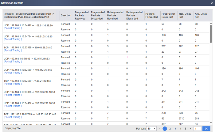 5-Tuple Packet Statistics – статистика пакетов по 5-туплету: количество, направления, сбросы.