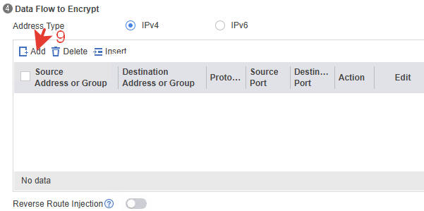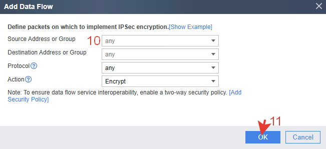 Data Flow to Encrypt – это правило, которое определяет, какой трафик должен шифроваться IPSec-политикой. Нужно добавить, иначе система не разрешит сохранить настройки. По сути, для L2TP/IPSec весь трафик туннеля шифруется автоматически, и этот Data Flow служит только для корректного завершения конфигурации, а не для фильтрации реального трафика. Поэтому в настройке указываем any. В других ситуациях можно выбрать определенные адреса и протоколы.