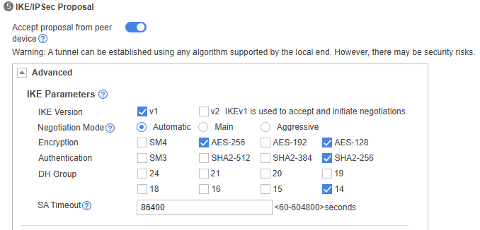 IKE/IPSec Proposal (предложение) – это набор правил шифрования и параметров безопасности, которые используют две стороны (клиент и Huawei USG) для построения IPsec-туннеля.