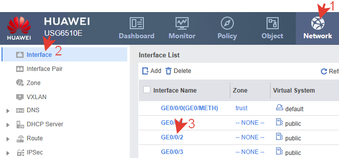 firewall zone untrust add interface GigabitEthernet0/0/4 |
