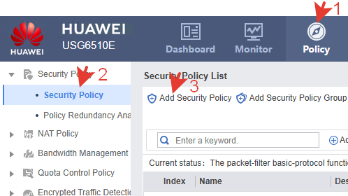 security-policy rule name ALLOW-ESP source-zone untrust destination-zone local service esp destination-address 10.150.170.1 mask 255.255.255.255 action permit quit |
