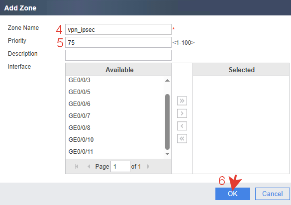 system-view firewall zone vpn_ipsec set priority 75 add interface Virtual-Template0 quit |