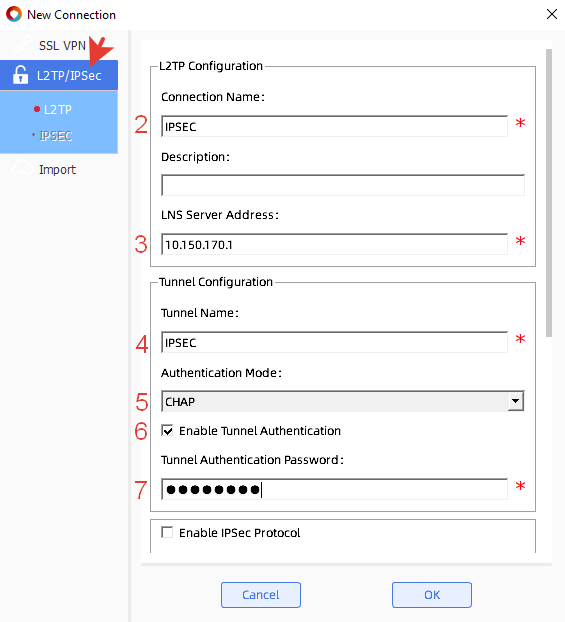 LNS Server Address – IP-адрес сервера L2TP «внешний», на который будет происходить подключение.