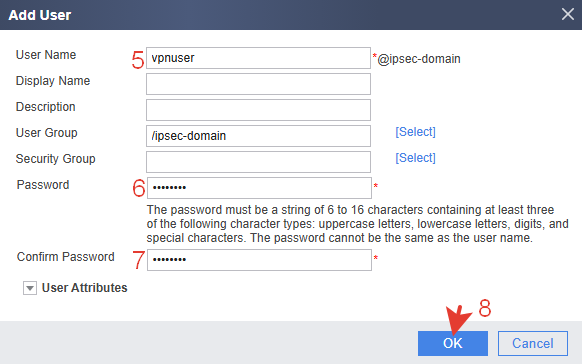 system-view user-manage user vpnuser domain ipsec-domain password Pass-135 quit |