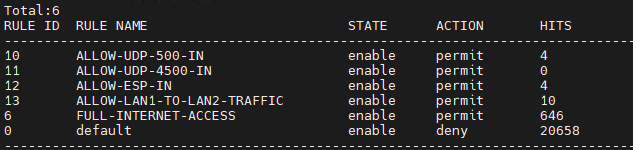 По колонке hits можно определять доходит ли соединение до политики безопасности.
