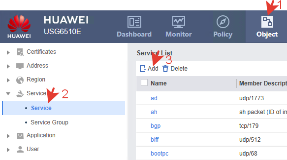 На первом этапе трафик направляется из внешней не доверенной сети в сам USG, поэтому в политиках используется направление зон untrust-to-local.