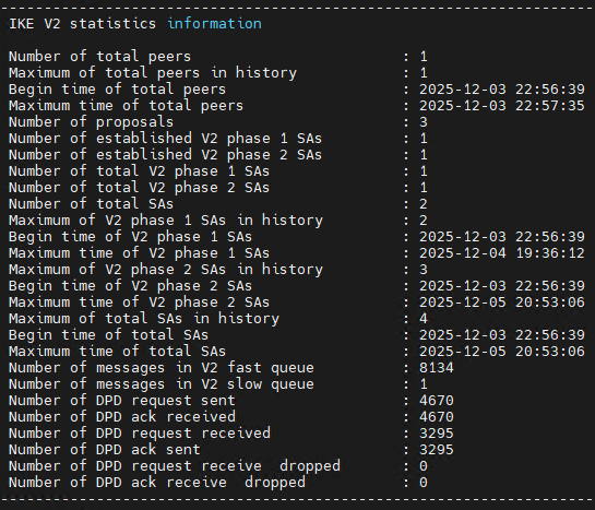 По статистикам ipsec и ike можно определить количество ошибок, количество успешных/неуспешных SA, падения/таймауты.
