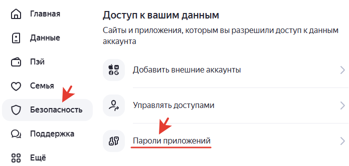 Создаем пароль приложения в почте.