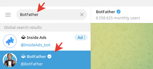 Находим через поиск BotFather.