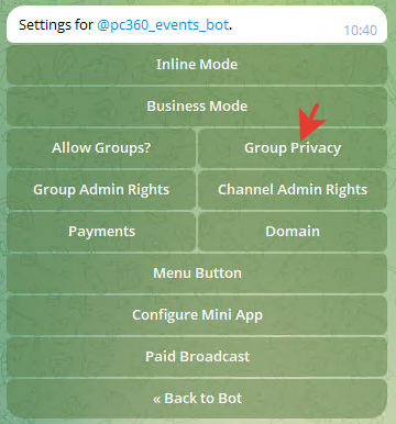 Не обязательное действие – бота можно настроить.