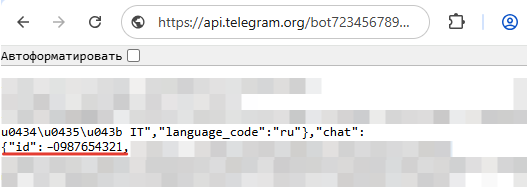В выводе находим id чата.