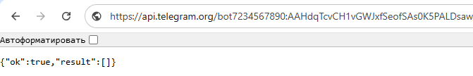 Пишем в бот-чат любое сообщение и еще раз проверяем вывод в браузере.